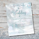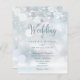 Una invitación de boda de invierno elegante y económica que presenta tipografía elegante y delicados copos de nieve que caen sobre sus nombres personalizados, fecha especial y detalles del evento de celebración de la boda en un fondo de escarcha invernal. Diseñado por Thisisnotme©