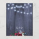 Presupuesto de boda de invierno, invitación asequible con un ramo floral de rosas rojas borgoña y peonías blancas con ramas de abeto verde pino de temporada, bayas rojas y follaje con hilos de luces centelleantes sobre un fondo de madera de granero azul marino y con una tipografía moderna y elegante. ++++++++++++ ¡Personalízalo con tus datos y tu monograma / iniciales del nombre de la pareja en el reverso! ++++++++++ La invitación es ideal para bodas temáticas de Navidad con estilo rústico floral de invierno. ++++++++++ ¡POR FAVOR LEA ESTO ANTES DE COMPRAR! Esta es una tarjeta de boda económica impresa en una hoja de papel (cada hoja tiene una tarjeta). ++++ Para obtener la mejor relación precio-calidad, nuestro consejo es elegir el tipo de papel Semibrillante (es lo suficientemente grueso como para ser utilizado para papelería) ++++ Si necesita sobres, elija la OPCIÓN DE SOBRE. +++ Verifique toda la información y ortografía de su texto porque recibirá exactamente lo que ve, nadie más verificará nada antes de imprimir. ++++ Esta tarjeta está diseñada para un tamaño de 4.5" x 5.6". En caso de que elija otro tamaño de tarjeta y el texto se salga de la página, todo deberá