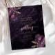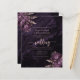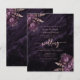 Esta elegante invitación de boda presenta ramos florales púrpura resaltados con follaje de lámina de rosa dorado en dos esquinas, sobre una imagen de fondo de ágata de acuarela púrpura. El texto rosa rosa personalizable combina fuentes serif, itálicas y manuscritas. El reverso presenta un diseño floral y de ágata púrpura y rosa dorado a juego.