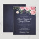 Lámina Invitación de boda floral rosa y azul marino rústi