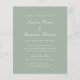 Invitación de boda elegante formal clásica tradicional con RSVP en línea con texto blanco sobre fondo verde sabio