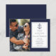 Esta elegante invitación de boda azul marino presupuesto con temática náutica puede ser personalizada con tu foto especial y los detalles de tu día especial. Diseñada por Thisisnotme©