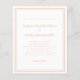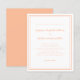 La invitación de boda elegante y de moda económica presenta un diseño minimalista contemporáneo simple con un borde de doble marco en color melocotón sobre un fondo blanco crujiente. La redacción tradicional proporciona una sofisticación atemporal y moderna. Personalice el diseño de la boda con sus detalles en letra y escritura melocotón chic. La parte trasera de la tarjeta coincide con el melocotón sólido.