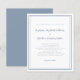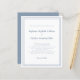 La invitación de boda económica elegante y de moda presenta un diseño minimalista contemporáneo simple con un borde de doble marco en color azul polvoriento sobre un fondo blanco crujiente. La redacción tradicional proporciona una sofisticación atemporal y moderna. Personalice el diseño de la boda con sus detalles en letra y caligrafía azul polvorienta chic. La parte trasera de la tarjeta coincide con el azul polvoriento sólido.