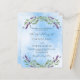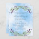 Un cielo blanco y azul como fondo decorado con flores de lavanda y vegetación de eucalipto. Personaliza y tus nombres y detalles.