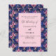 Fondo azul marino decorado con motivos florales rosados de estilo retro. Personalice y agregue sus nombres y los detalles. 1 hoja = 1 borde impreso de invitación al borde.