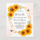Para una ducha de novia de verano y otoño. Un elegante fondo acuarelado blanco y dorado. Un marco geométrico de oro falso y abejas. Con el texto: Novia abeja y el nombre de la novia por delante escrito con una escritura moderna de letra a mano. Letras negras.