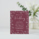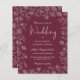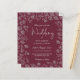Una elegante invitación a bodas baratas. El rústico fondo rojo burdeos está enmarcado con un elegante follaje floral de Relieve metalizado plateado. Personalice agregando todos los detalles del evento.