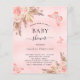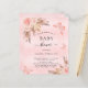 Para una moderna ducha tipo boho. Un fondo rústico rosado. Decorada con rosa de oro y flores rosadas, rosas, pampas y mariposas. Personalice y agregue un nombre y detalles del fiesta.