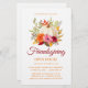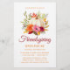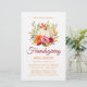 Invitación a la casa abierta para la cena de "Día de la Amistad" / "Día de Acción de Gracias" en papel de presupuesto. Flores de otoño alegres y calabaza blanca con motivos de boho acuarela con hojas de otoño y texto de escritura en colores festivos. Haga clic en Personalizar para cambiar el texto o el color de fondo.