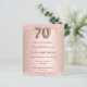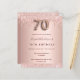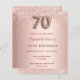 Una invitación moderna, elegante y glamurosa para una fiesta de cumpleaños 70. Un fondo metálico dorado rosa falso con un efecto de goteo de brillo dorado rosa elegante. El nombre está escrito con un estilo de letra manuscrita de color dorado rosa oscuro moderno. Personaliza y añade los detalles de tu fiesta. El número 70 está escrito con una fuente estilo globo, letra manuscrita.