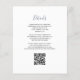 El borde izquierdo de esta romántica invitación a la boda incluye un ramo acuarela florido de flores azules polvorientas y vegetación. El texto del personalizable combina escritura a mano, copperplate y cursiva en color azul polvoriento y gris carbón sobre fondo blanco. Añada detalles adicionales en la parte posterior, junto con un código QR para ayudar a sus huéspedes a visitar su sitio web boda.