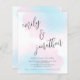 NOTA Hay dos opciones de papel entre las que elegir para este tamaño (4,5 x 5,6") en el rango de presupuesto. Para este producto, recomendaría el semi-brillo que es una tarjeta de 110 gsm, similar en grosor a una postal. La opción Satin es un papel mucho más delgado 80gsm. El valor predeterminado se establece en semi brillo. POR FAVOR, TENGA EN CUENTA QUE HAY UNA por hoja. Invitación de matrimonio de código QR azul rosa color agua de presupuesto. Con un código QR en el sitio web de su boda en la parte posterior para que sus invitados puedan ver todos los detalles en línea sin necesidad de gabinetes separados. Su código QR se generará automáticamente para actualizar el código de ejemplo en el diseño, cuando simplemente cambie la dirección URL de ejemplo de la plantilla con la dirección URL de su sitio web boda. Un suave fondo acuático pastel en tonos rosa y azul y los nombres ocupan el centro del escenario en la parte superior.