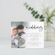 Invitación a matrimonio de código QR con escritura moderna de presupuesto. Un precio económico menor 4,5" x 5,6" alternativa. Disponible en un ALMACENAMIENTO DE TARJETAS SEMI-GLOSS de 110 lb que es la opción predeterminada (más grueso para las invitaciones), O UN ALMACENAMIENTO DE PAPELES DELGADOS SATIN FINISH DE 80 lb (ideal para los gabinetes). Añade tu código QR al sitio web de tu boda en la parte posterior, convirtiéndolo en una opción conveniente para tus invitados a RSVP y ver todos los detalles sin necesidad de tarjetas de detalles y RSVP separadas. Su código QR se generará automáticamente para actualizar el código de ejemplo en el diseño, cuando simplemente cambie la dirección URL de ejemplo de la plantilla con la dirección URL de su sitio web boda. Un minimalista diseño divertido para que todos sepan sus felices noticias. Sencillamente reemplace la foto de ejemplo con su favorita. Una capa superpuesta de gradiente está encima de la foto, por lo que se desvanece al llegar al centro con el texto parcialmente colocado sobre la parte superior. Boda está en un guión moderno y personaliza fácilmente el resto del texto.