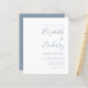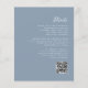 Esta sencilla y moderna invitación a la boda incluye un polvoriento texto azul sobre un fondo blanco. Añada los nombres de la novia y del novio en una caligrafía elegante de escritura a mano y los detalles en letra sans serif. El lado inverso proporciona espacio para los detalles del boda, junto con un código QR que los huéspedes pueden escanear para visitar su sitio web y RSVP, lo que ahorra el coste de imprimir y enviar por correo RSVP por separado. NOTA: Los sobres no se incluyen automáticamente con estas invitaciones presupuestarias, así que por favor recuerde elegir la opción "sobres blancos".