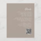 Esta sencilla y moderna invitación a la boda incluye un texto neutro sobre un fondo blanco. Añada los nombres de la novia y del novio en una caligrafía elegante de escritura a mano y los detalles en letra sans serif. El reverso proporciona espacio para los detalles del boda sobre un fondo de cinta sólida, junto con un código QR que los huéspedes pueden explorar para visitar su sitio web y RSVP.