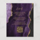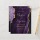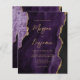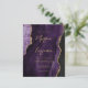 Esta elegante invitación a la boda presenta una imagen de fondo de una ágata color morado adornada con un falso purpurina de oro. El texto del personalizable combina la escritura a mano moderna de color dorado, el copperplate y las tipografías cursivas. El lado inverso proporciona espacio para los detalles del boda en un fondo de color violeta coincidente, junto con un código QR que los huéspedes pueden explorar para visitar su sitio web y RSVP, lo que ahorra el coste de imprimir y enviar tarjetas RSVP separadas.