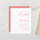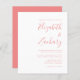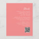 Esta sencilla y moderna invitación a la boda incluye texto de coral sobre un fondo blanco. Añada los nombres de la novia y del novio en una caligrafía elegante de escritura a mano y los detalles en letra sans serif. El reverso proporciona espacio para los detalles bodas sobre un fondo de coral sólido, junto con un código QR que los huéspedes pueden explorar para visitar su sitio web y RSVP.
