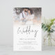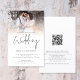 POR FAVOR, TENGA EN CUENTA QUE HAY UNA invitación por hoja. Invitación a la boda del guión de la escritura QR para superposición de la foto del presupuesto. Un tamaño mayor de 5,5" x 8,5" a un precio económico, en una BOLSA DE TARJETAS SEMI GLOSS de 110 lb, ideal para invitaciones, aproximadamente con el mismo espesor que una postal, o un elegante stock LINEN de 110 lb - para un lujo, ligeramente más delgado a un gran valor. TENGA EN CUENTA QUE LOS ENVELOPES OPCIONALES SON UN POCO MÁS GRANDES DE TAMAÑO A 6,75" x 9" aprox. Esta alternativa de tamaño de presupuesto también está disponible en otras opciones de papel. El papel FELT de 100 libras es de color buff, NO blanco, por lo que añade un toque rústico. El material de papel MATTE 80lb es blanco brillante, para impresión crujiente, ideal para menús y programas, mientras que el papel SATIN de 80 libras es delgado y liviano, ideal para gabinetes. Con un código QR en el sitio web de su boda en la parte posterior para que sus invitados puedan ver todos los detalles en línea sin necesidad de gabinetes separados. Su código QR se generará automáticamente para actualizar el código de ejemplo en el diseño, cuando simplemente cambie la dirección URL de ejemplo de la plantilla con la dirección URL de su sitio web boda. Una tipografía de conjunto informal en negro para el Boda principal de encabezado que complementa el resto del texto que se puede personalizar fácilmente. Reemplace la foto de ejemplo con su propio favorito.