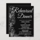 tarjeta de invitación de cena de ensayo de caligrafía negra romántica. Esta invitación de cena de ensayo de caligrafía negra de flores silvestres románticas es ideal para una sencilla cena de ensayo de boda. El diseño clásico moderno incluye florituras caprichosas y elegantes así como una tipografía blanca manuscrita y elegante.
