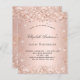 Para una elegante fiesta de cumpleaños número 50 (o cualquier edad). Fondo subió de gradiente dorado. Decorada con confeti de oro rosa. Personalice y agregue un nombre y detalles del fiesta. El nombre se escribe con un guión de estilo con letras a mano