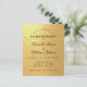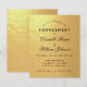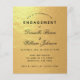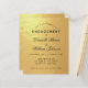 Una invitación de compromiso de presupuesto que tiene solo texto negro en hojaldre de oro falso. Los nombres están escritos en una elegante letra caligráfica, el resto en mayúsculas. la primera línea es texto arqueado.