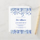 Moderna, elegante e invitada. Un fondo blanco decorado con un confeti azul. Personalice y agregue un nombre y detalles. Texto azul. 1 hoja = 1 borde impreso de invitación al borde.