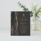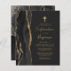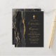 El borde izquierdo de esta elegante y moderna invitación a la Confirmación incluye un borde de batida de color negro adornado con un falso purpurina de oro. Una falsa cruz de Relieve metalizado dorado aparece encima del texto del personalizable, que combina la escritura a mano de color dorado, la copperplate y las fuentes cursivas sobre un fondo negro de pizarra. El reverso presenta un diseño de agate negro y oro a juego.