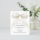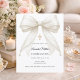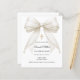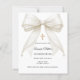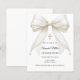 Un fondo blanco, decorado con un lazo grande de color marfil con perlas y una cruz dorada. Personalice y agregue un nombre y detalles.
