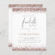 Hay dos opciones de papel para elegir para este tamaño (4.5 x 5.6”) en la gama Budget. Para este producto, recomiendo el semi-brillante que es un cartón de 110 gsm, similar en grosor a una postal. La opción Satin es un papel mucho más delgado de 80 gsm. El valor predeterminado está configurado para semi-brillante. Tenga en cuenta que hay UNO por hoja. Invitación de cumpleaños número 40 Budget Glam Rose Gold Glitter Party. Un borde de falso brillo de oro rosa está en la parte superior de cada lado. "Fortieth" está en un conjunto de letra script moderno y elegante y el resto del texto se puede personalizar fácilmente.