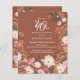 Rústica invitación a la fiesta de cumpleaños número 40 en otoño. Flores blancas y luminosas contra la terracota profunda, fondo marrón. Flores naturales naranjas profundas, flores rosadas suaves y hojas verdes profundas crean una exhibición bonito otoñal de flores praderas. Los textos en blanco y la caligrafía de moda añaden detalles encantadores.