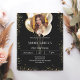 Una invitación moderna, elegante y glamurosa para una fiesta de cumpleaños de 21 (o cualquier edad). Un fondo negro, decorado con finos destellos de purpurina dorado y globos dorados. Personaliza y agrega tu nombre, foto y detalles del fiesta. Un marco fotográfico al estilo de un globo. 1 hoja = 1 borde impreso de invitación