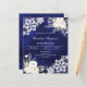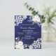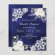 Para un elegante fiesta de invierno. Un fondo azul marino, de colores desiguales, decorado con flores blancas, rosas y encaje blanco. Personalice y agregue su nombre y detalles. 1 hoja = 1 borde impreso de invitación al borde.
