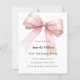 Un fondo blanco, decorado con un lazo grande rosa. Personalice y agregue un nombre y detalles de la fiesta.