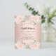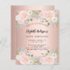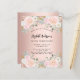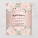 Una invitación moderna, elegante y glamurosa para una fiesta de cumpleaños número 50 (o cualquier edad). Un fondo dorado rosa con flores rosadas, rosas. El nombre está escrito con una escritura de estilo con letras a mano moderna. Personalice y agregue los detalles de su fiesta. 1 hoja = 1 borde impreso de invitación al borde.