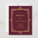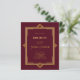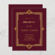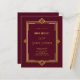 Para una elegante celebración de cumpleaños estilo Gatsby 50 (o cualquier edad). Un fondo burdeos decorado con un marco de estilo Art Déco dorado. Personalice y agregue su nombre y detalles del fiesta. 1 hoja = 1 borde impreso de invitación al borde.