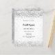 Una invitación para una elegante fiesta de cumpleaños número 21 (o cualquier edad). Un fondo blanco de moda en la parte delantera. Decorado con confeti de plata falsa. Personalice y agregue un nombre y detalles del fiesta. El nombre se escribe con un guión de estilo con letras a mano. Atrás: fondo falso plateado con chispas. 1 hoja = 1 borde impreso de invitación al borde.