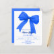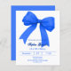 Un fondo blanco, decorado con un gran arco azul real. Personalice y agregue un nombre y detalles del fiesta. 1 hoja = 1 borde impreso de invitación al borde.