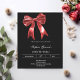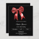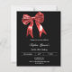 Un fondo negro, decorado con un gran arco rojo. Personalice y agregue un nombre y detalles del fiesta. 1 hoja = 1 borde impreso de invitación al borde.