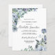 Rosas azul turbio, peonías y flores silvestres decoran una bonito floral invitación al presupuesto de 40 años. La caligrafía moderna se suma al Boho Vibe.