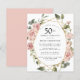 Las polvorientas rosas rosadas crean un moderno borde floral en esta invitación a la fiesta de 50 años.