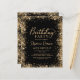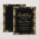 Invitaciones de cumpleaños número 60 con brillo dorado y negro elegante y moderno. Este diseño de tarjeta femenina para adultos presenta una elegante tipografía caligráfica manuscrita en dorado sobre fondo negro con un borde de brillo suelto alrededor. Fácil de personalizar, perfecto para cualquier edad.