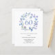 Hoja de invitación a acuarela de 60 cumpleaños floral azul presupuesto. Perfecto para un cumpleaños de primavera o verano. Es fácil cambiar el texto. La hoja de papel es más delgada que el papel de la tarjeta.