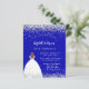 Una invitación moderna, elegante y glamurosa para una fiesta de cumpleaños número 18 (o cualquier edad). Un fondo azul real con polvo falso purpurina, un chica con un vestido de bola. El nombre está escrito con una escritura de estilo con letras a mano moderna. Personalice y agregue los detalles de su fiesta. 1 hoja = 1 borde impreso de invitación al borde.