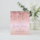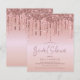 Una alternativa de papel económica. Los sobres son un extra opcional. Gotas de brillo glamuroso falso en borde de oro rosa enmarcan el borde superior en ambos lados. Despedida de Soltera está escrita en una tipografía moderna y elegante en un tono coordinado y el resto del texto se puede personalizar fácilmente.