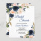 El diseño presenta hermosos elementos florales de acuarela en tonos de azul marino, rosa sonrosado y más sobre vegetación de eucalipto, elementos de hojas y más diseños de hojas en línea.