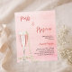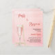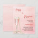 Una invitación moderna, elegante y glamurosa para una despedida de soltera con perlas y Prosecco. Fondo degradado rosa con manchas doradas, un vaso con burbujas rosadas y perlas. El nombre está escrito con un estilo de letra manuscrita moderna. Personaliza y añade los detalles de tu fiesta.