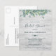 Invite a sus amigos y familiares a su baby shower con estas tarjetas postales de baby shower rústicas de madera con eucalipto, elegantes pero informales. Estas tarjetas postales de invitación de boda económicas deben enviarse por correo como tarjetas postales de gran tamaño, por lo que pueden incurrir en tarifas de franqueo estándar, pero no necesitan sobre ni etiqueta de dirección de devolución. Personalice con nombre, fecha del baby shower, ubicación y cualquier otra información. Agregue sitio web y cualquier otra información en el reverso. Estas invitaciones únicas de baby shower de vegetación dejarán una impresión duradera. DERECHOS DE AUTOR © 2020 Judy Burrows, Black Dog Art - Todos los derechos reservados. Invitación de baby shower de eucalipto económico con vegetación.