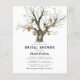 Invitaciones de despedida de soltera rústicas y económicas con un tronco de roble en acuarela, un corazón tallado con las iniciales de la pareja, linternas de luz vintage y una plantilla elegante para la fiesta nupcial.