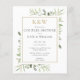 Con delicada vegetación en acuarela, esta invitación de ducha de boda de parejas económica se puede personalizar con tus iniciales de monograma dorado y la información especial de la ducha de boda, con un fondo de salvia plateada en el reverso. Diseñado por Thisisnotme©